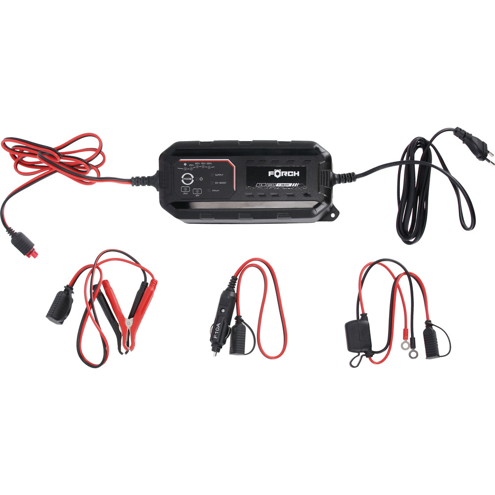 • bez napěťových špiček – baterie 12 V: 14 až 225 Ah a baterie 24 V: 14 až 110 Ah je možné nabíjet v připojeném stavu, aniž by došlo k poškození elektroniky vozidla (řízení motoru)